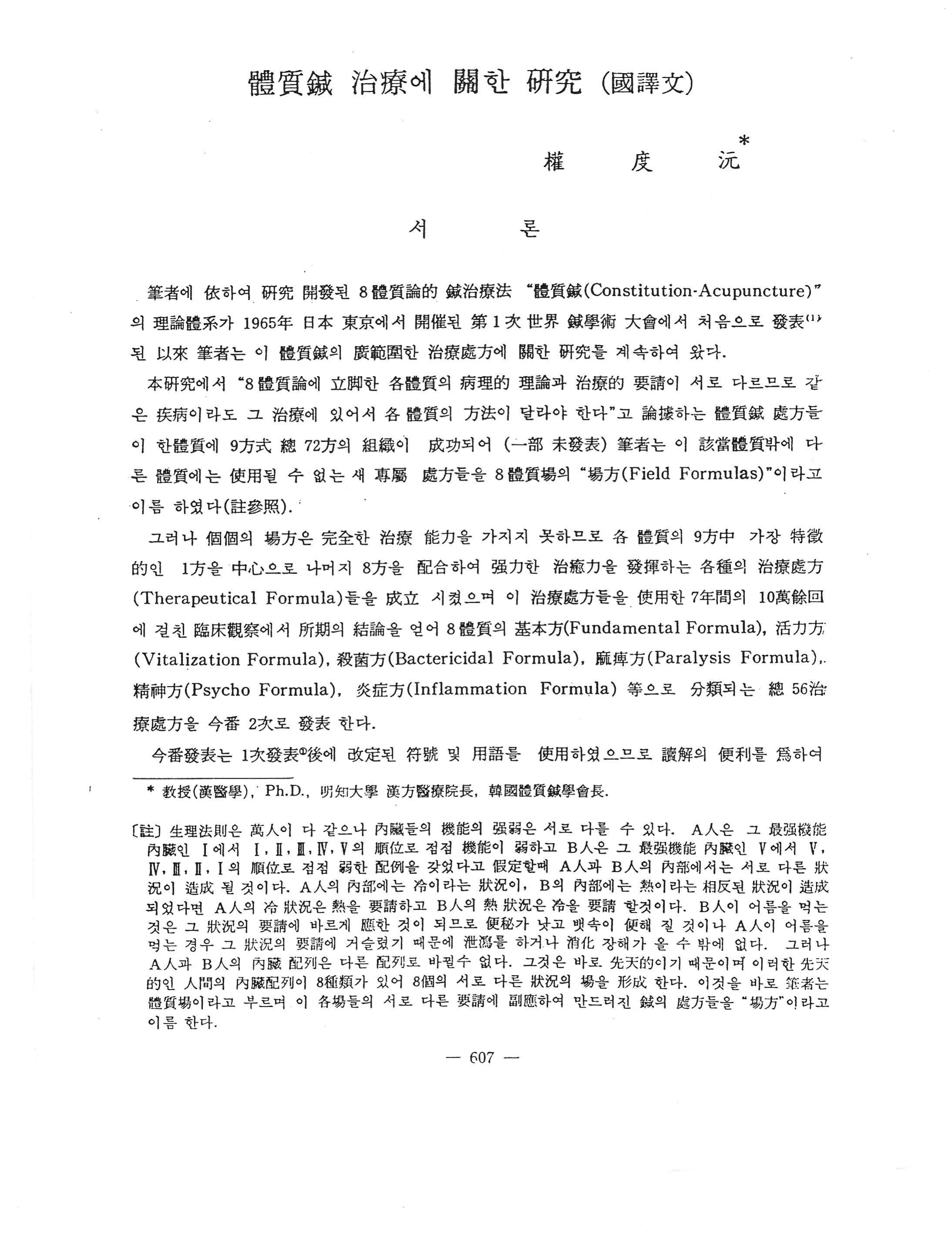 권도원. 체질침 치료에 관한 연구(國譯本). 명(明)대논문집. 1974; 7; 607-625.