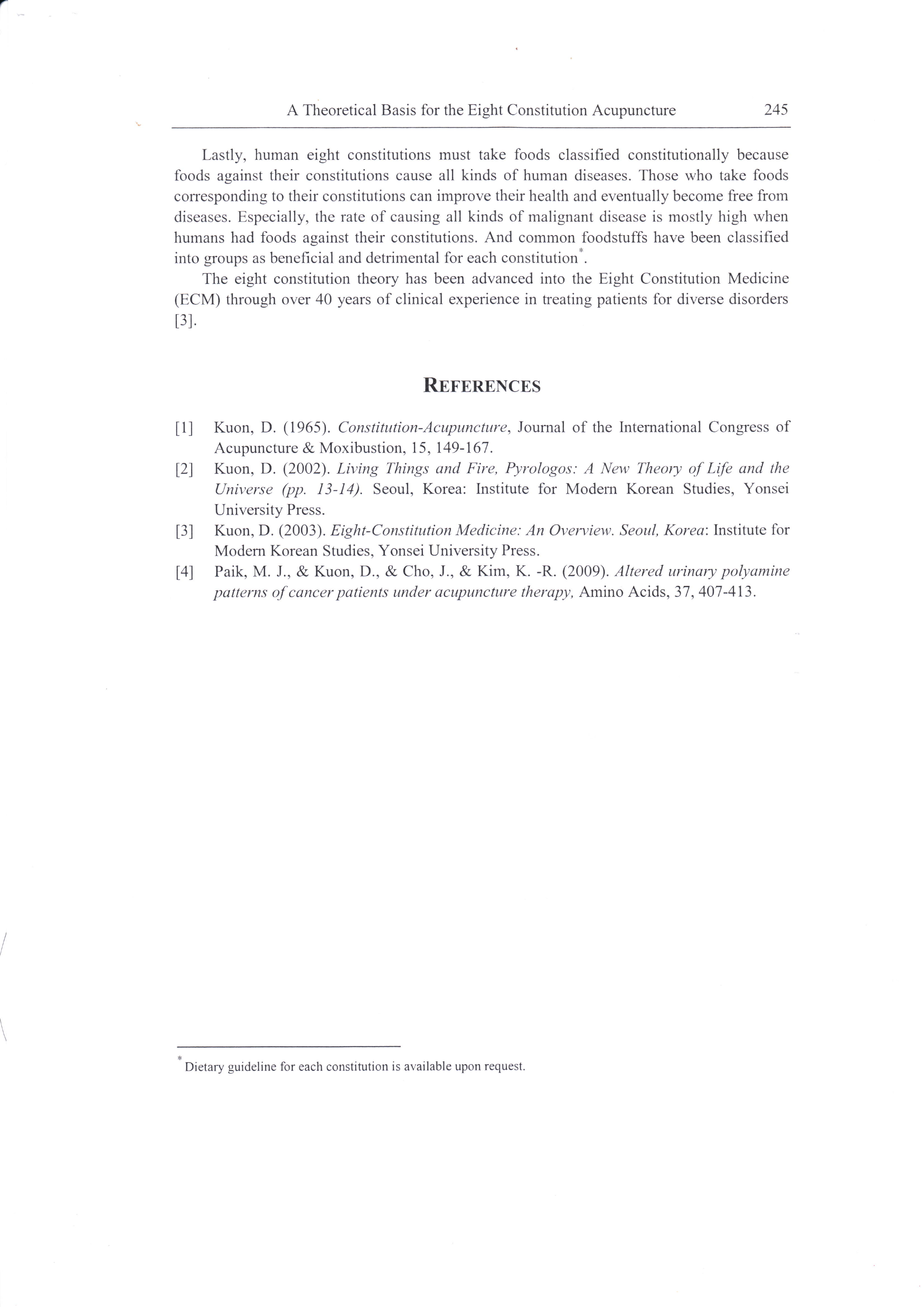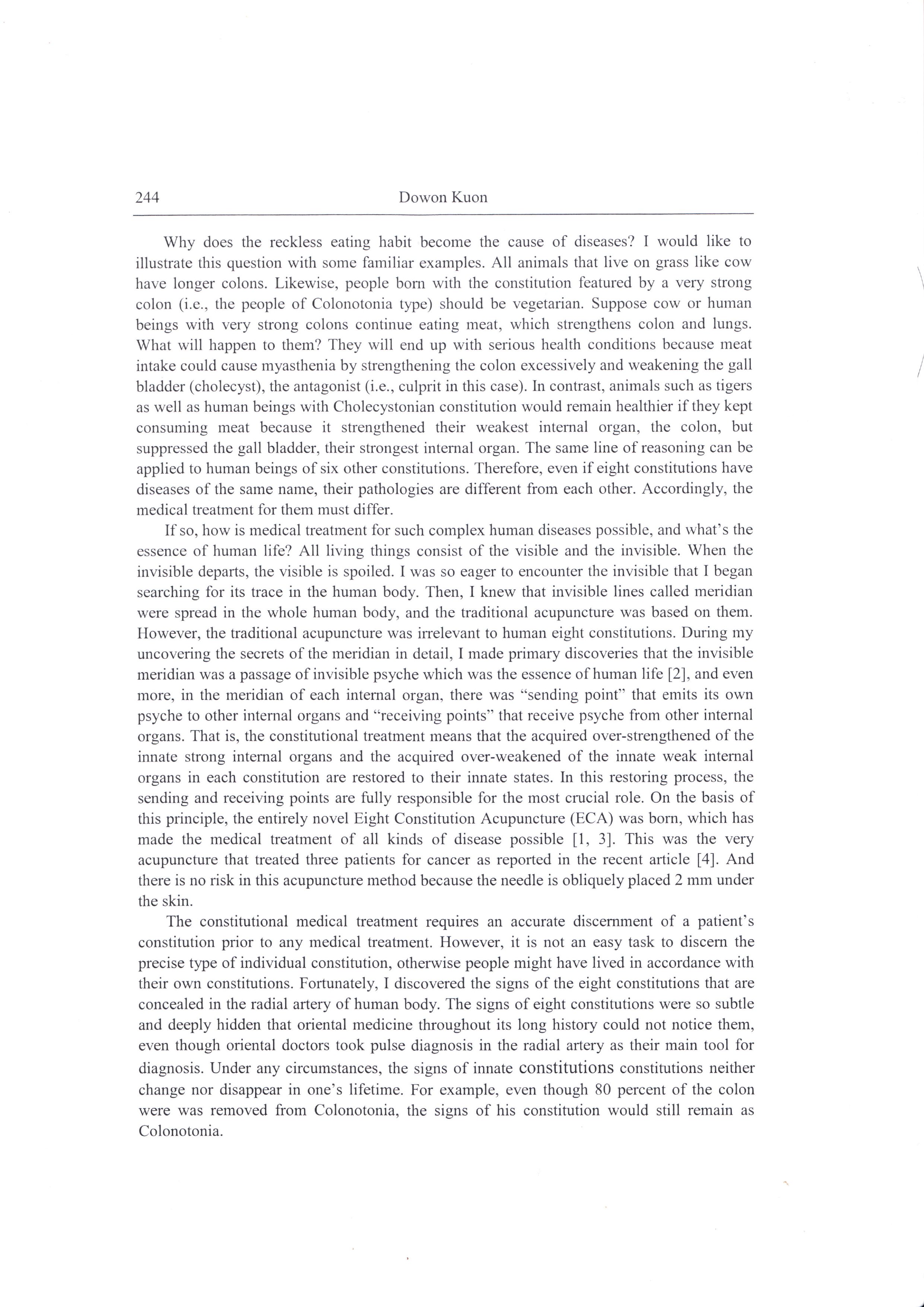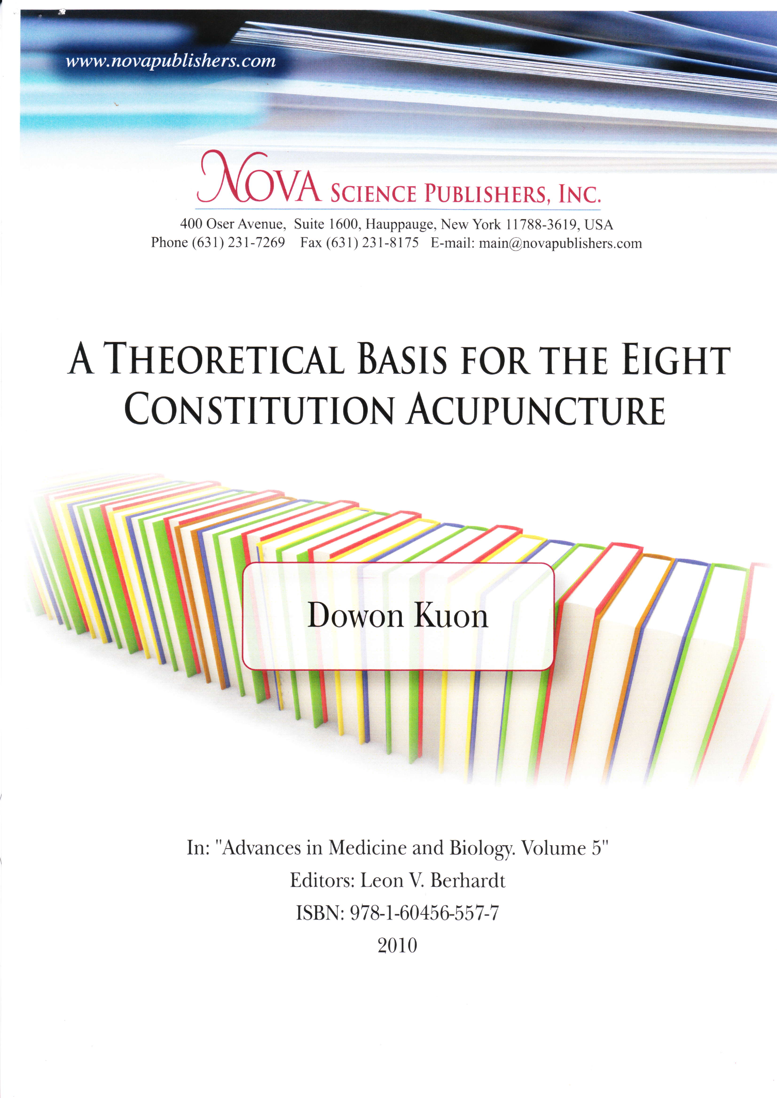 Dowon Kuon, A Theoretical Basis for the Eight Constitution Acupuncture. Advances in Medicine and Biology. Nova Science Publishers. 2011; Volume 5, pp.243-246.
